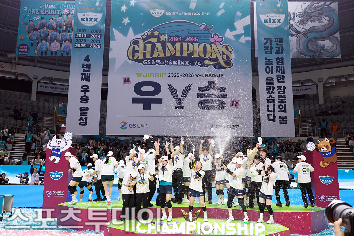 À̳¯ GSĮŨ½º°¡ ¼¼Æ®½ºÄÚ¾î 3-1(25-15 19-25 25-20 25-20)·Î èÇǾð°áÁ¤Àü ¿ì½ÂÀ» Â÷ÁöÇß´Ù.2026.04.05.