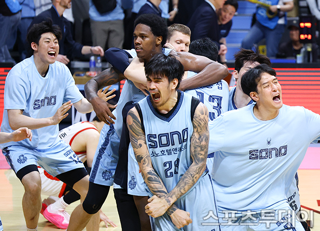 [°í¾ç(°æ±â)=½ºÆ÷Ã÷Åõµ¥ÀÌ ÆØÇöÁØ ±âÀÚ] 16ÀÏ °æ±âµµ °í¾çüÀ°°ü¿¡¼­ ¿­¸° 2025-2026 KBL 6°­ Ç÷¹ÀÌ¿ÀÇÁ °í¾ç ¼Ò³ë¿Í ¼­¿ï SKÀÇ 3Â÷Àü, ¼Ò³ë°¡ 66-65·Î ½Â¸®Çϸç 4°­¿¡ ÁøÃâÇϰí ÀÖ´Ù. 2026.04.16.