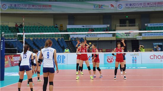 | ¾çÈ¿Áø(¿ÞÂÊ)°ú ÀÌÀ翵ÀÌ 23ÀÏ Áß±¹ ÅÙÁøÃ¼À°°ü¿¡¼ ¿¸° 2015 ¾Æ½Ã¾Æ¿©Àڹ豸¼±¼ö±Ç ´ë¸¸°úÀÇ 8°Àü¿¡¼ ºí·ÎÅ·À» ÁغñÇϰí ÀÖ´Ù./´ëÇѹ豸Çùȸ Á¦°ø |