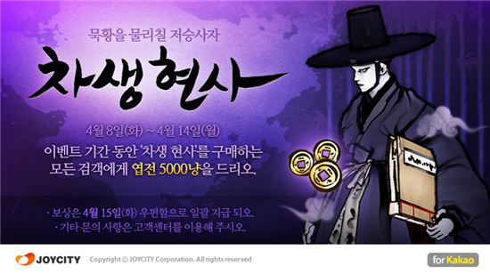 Á¶ÀÌ½ÃÆ¼´Â ½Å±Ô ij¸¯ÅÍ Ãâ½Ã ±â³äÀ¸·Î 'Â÷»ý Çö»ç'¸¦ ±¸¸ÅÇÑ °ÔÀÌ¸Ó Àü¿ø¿¡°Ô '¿±Àü' 5000°³¸¦ ÁõÁ¤ÇÏ´Â À̺¥Æ®¸¦ ½ÃÀÛÇÑ´Ù. 9ÀϺÎÅÍ 16ÀϱîÁö´Â °ÔÀÓ¿¡ Á¢¼ÓÇÑ ¸ðµç À¯Àú¿¡°Ô '¿ù¿µ¼®' 10°³¸¦ Áö±ÞÇÑ´Ù.