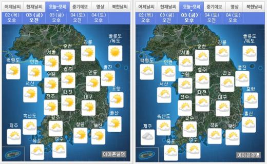 3ÀÏ ±â»óûÀº ¿À´Ã³¯¾¾¿¹º¸¿¡ ´ëÇØ "ÀϺ» ³²ÂÊÇØ»ó¿¡¼ µ¿ÁøÇÏ´Â °í±â¾ÐÀÇ ¿µÇâÀ» ¹Þ´Ù°¡ Á¡Â÷ ±× °¡ÀåÀÚ¸®¿¡ µç´Ù. Àü±¹ÀÌ ´ëü·Î ¸¼´Ù°¡ ³·¿¡ ³²ºÎÁö¹æºÎÅÍ Á¡Â÷ ±¸¸§ÀÌ ¸¹¾ÆÁú Àü¸ÁÀÌ´Ù.