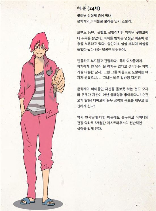 ÇöÀç ½ºÆ÷Ã÷Åõµ¥ÀÌ¿¡ ¿¬ÀçÁßÀÎ ¡®²É¹Ì³² °Ô½ºÆ®ÇϿ콺¡¯´Â ºÏÃÌ¿¡¼ ÇÑ¿Á °Ô½ºÆ®ÇϿ콺¸¦ ¿î¿µÇÏ°Ô µÈ ¹Ì³² »ïÇüÁ¦¿Í ¼Õ´ÔÀ¸·Î ¿Ô´Ù°¡ ¾Ë¹Ù»ýÀ¸·Î ´·¯¾ÉÀº ½Ã°ñóÀÚÀÇ °Ô½ºÆ®ÇϿ콺 ¿î¿µ±â¸¦ ±×¸° ÀÛǰÀÌ´Ù.