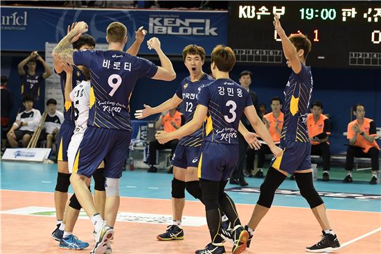 Çѱ¹Àü·ÂÀº 18ÀÏ ¿ÀÈÄ ¼ö¿ø½Ç³»Ã¼À°°ü¿¡¼ ¿¸° NH³óÇù 2016-2017 V-¸®±× ³²ÀںΠKB¼ÕÇØº¸Çè°úÀÇ °æ±â¿¡¼ Ä¡¿ÇÑ Á¢Àü ³¡¿¡ 3-2(25-23 22-25 22-25 25-22 15-13) ½Â¸®¸¦ °Åµ×´Ù. Çѱ¹Àü·ÂÀº ½ÂÁ¡ 2Á¡, KB¼ÕÇØº¸ÇèÀº ½ÂÁ¡ 1Á¡À» ì°å´Ù.