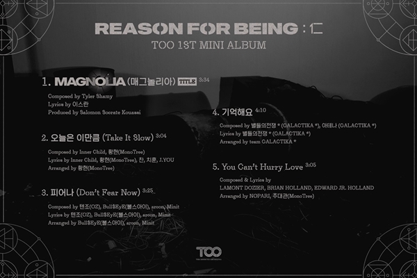 19ÀÏ 0½Ã TOO(Ä¡ÈÆ, µ¿°Ç, Âù, Áö¼ö, ¹Î¼ö, ÀçÀ±, Á¦ÀÌÀ¯, °æÈ£, Á¦·Ò, ¿õ±â) °ø½Ä SNS¸¦ ÅëÇØ 1st ¹Ì´Ï¾Ù¹ü ¡®¸®Áð Æ÷ ºù: ÀÎ(REASON FOR BEING: ìÒ)¡¯ Æ®·¢¸®½ºÆ® À̹ÌÁö°¡ °ÔÀçµÆ´Ù.