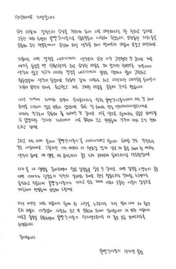¾ÈÁö¿µÀº 2ÀÏ º¼»¡°£»çÃá±â °ø½Ä ÆÒÄ«Æä¸¦ ÅëÇØ ÀÚÇÊ ÆíÁö¸¦ °ø°³Çß´Ù. ¾ÈÁö¿µÀº "ÀÌ·¸°Ô °©ÀÛ½º·´°Ô (¿ìÁöÀ± Å»Åð) ¼Ò½ÄÀ» ÀüÇÏ°Ô µÅ ³Ê¹« ¹Ì¾ÈÇÏ´Ù´Â ¸»À» ÀüÇÏ°í ½Í¾î¿ä"¶ó¸ç "¿À·§µ¿¾È ÀúÈñ¸¦ ÀÀ¿øÇØ ÁֽŠÆÒºÐµé²²¼ ¼Ó»óÇØ ÇÏ½Ç »ý°¢À» ÇÏ´Ï ¹ú½áºÎÅÍ ¸¶À½ÀÌ ¹«°Ì°í ¹Ì¾ÈÇØ¿ä"¶ó°í Àû¾ú´Ù.