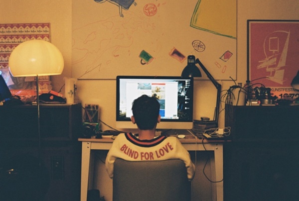 ÄܼÁÆ® Æ÷Åä ¼Ó Ã¥»ó¿¡ ¾É¾Æ ÄÄÇ»Å͸¦ ¹Ù¶óº¸´Â ÁÖ¿µÀÇ µÞ¸ð½À¿¡¼´Â ¾µ¾µÇÏÁö¸¸ ¸ùȯÀûÀÎ °¨¼ºÀÌ ´À²¸Á® ´«±æÀ» ²ö´Ù.