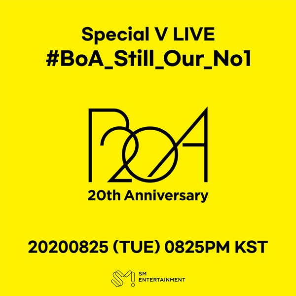 18ÀÏ ¼Ò¼Ó»ç SM¿£ÅÍÅ×ÀÎ¸ÕÆ® ÃøÀº "º¸¾Æ°¡ µ¥ºß ±â³äÀÏÀÎ 25ÀÏ ¿ÀÈÄ 8½Ã 25ºÐºÎÅÍ ³×À̹ö V ¶óÀ̺ê SMTOWN ä³ÎÀ» ÅëÇØ »ý¹æ¼Û 'º¸¾Æ ½ºÆ¿ ¾Æ¿ì¾î(BoA Still Our No.1 – BoA Debut 20th Anniversary Special V LIVE'(º¸¾Æ ½ºÆ¿ ¾Æ¿ö ³Ñ¹ö¿ø – º¸¾Æ µ¥ºß 20Áֳ⠱â³ä ½ºÆä¼È ºêÀÌ ¶óÀ̺ê)¸¦ ÁøÇàÇÑ´Ù"°í ¾Ë·È´Ù.
