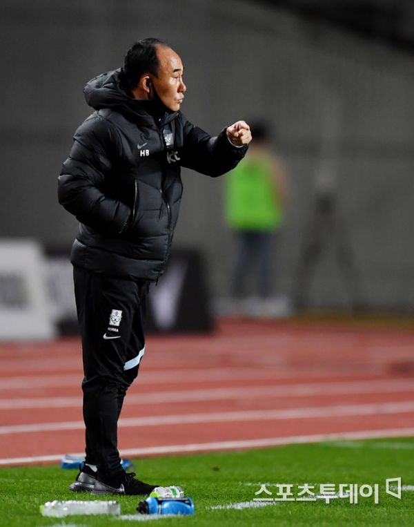 [°í¾ç(°æ±â)=½ºÆ÷Ã÷Åõµ¥ÀÌ ÆØÇöÁØ ±âÀÚ] 9ÀÏ ¿ÀÈÄ °í¾çÁ¾ÇտÀå¿¡¼ ¿¸° 2020 ÇϳªÀºÇàÄÅ Ã౸±¹°¡´ëÇ¥ÆÀ vs ¿Ã¸²ÇÈ´ëÇ¥ÆÀ Ä£¼±°æ±â, ¿Ã¸²ÇÈ´ëÇ¥ÆÀ ±èÇйü °¨µ¶ÀÌ Áö½Ã¸¦ Çϰí ÀÖ´Ù. 2020.10.09.