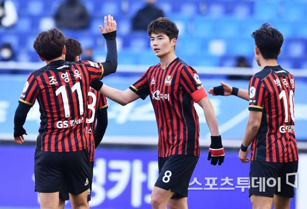 [¼ö¿ø=½ºÆ÷Ã÷Åõµ¥ÀÌ ÆØÇöÁØ ±âÀÚ] 21ÀÏ ¼ö¿ø¿ùµåÄŰæ±âÀå¿¡¼ ¿¸° 2021 K¸®±×1 ¼ö¿ø »ï¼º°ú FC ¼¿ïÀÇ °æ±â, FC ¼¿ï ±â¼º¿ëÀÌ °ñÀ» ³Ö°í ÀÖ´Ù. 2021.03.21.