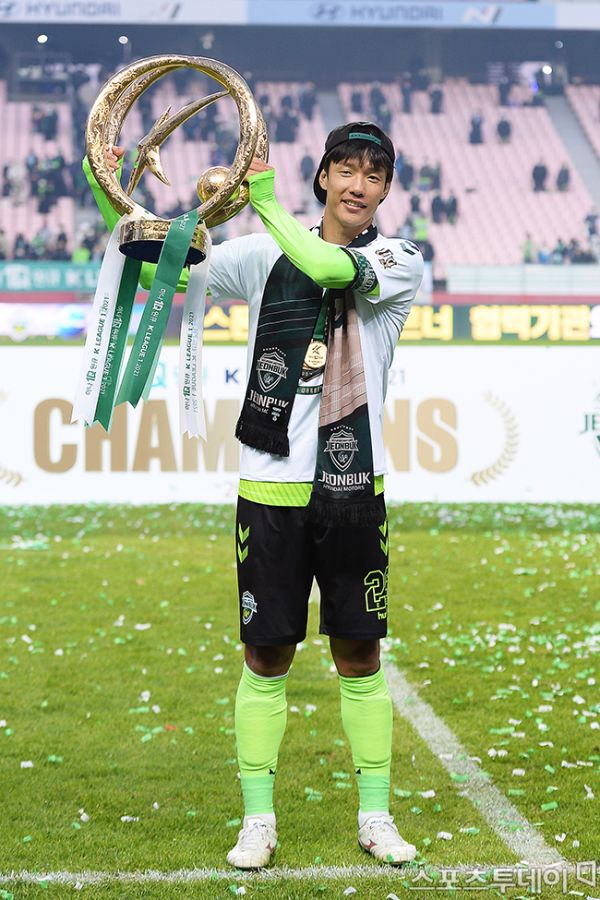ÀüºÏÀÌ »ç»ó ÃÖÃÊ 5¿¬¼Ó ¿ì½ÂÀ» Â÷ÁöÇÑ µÚ È«Á¤È£ ÁÖÀåÀÌ Æ®·ÎÇǸ¦ µé°í ±â³ä ÃÔ¿µÀ» Çϰí ÀÖ´Ù. 2021.12.05.