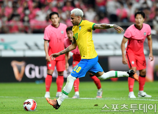 [½ºÆ÷Ã÷Åõµ¥ÀÌ(»ó¾Ï)=ÆØÇöÁØ ±âÀÚ] 2ÀÏ ¼­¿ï¿ùµåÄŰæ±âÀå¿¡¼­ ¿­¸° 2022 ÇϳªÀºÇà ÃÊû ´ëÇѹα¹°ú ºê¶óÁúÀÇ Ã౸ ±¹°¡´ëÇ¥ÆÀ Ä£¼±°æ±â, Àü¹Ý 41ºÐ ºê¶óÁú ³×À̸¶¸£°¡ PK¸¦ ¼º°øÇϰí ÀÖ´Ù. 2022.06.02.