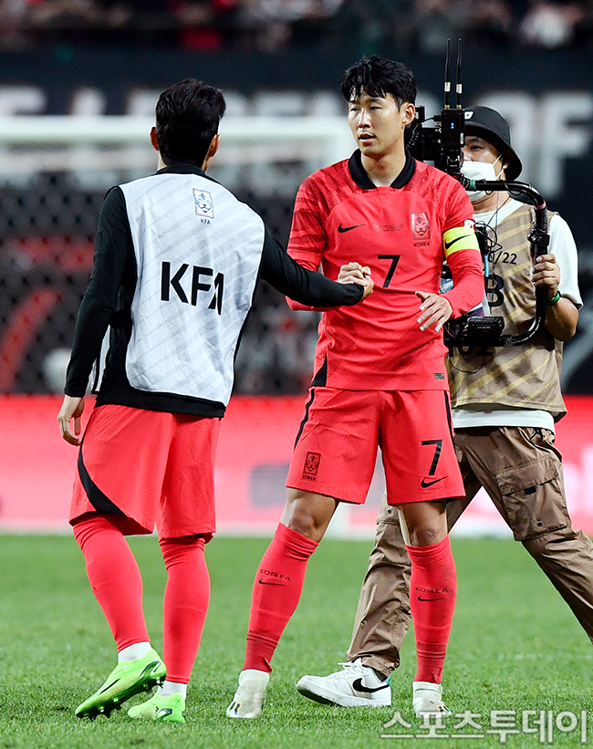 [½ºÆ÷Ã÷Åõµ¥ÀÌ(»ó¾Ï)=ÆØÇöÁØ ±âÀÚ] 27ÀÏ ¿ÀÈÄ ¼¿ï¿ùµåÄŰæ±âÀå¿¡¼ ¿¸° ´ëÇѹα¹°ú Ä«¸Þ·é Ã౸±¹°¡´ëÇ¥ÆÀÀÇ Ä£¼±°æ±â, ´ëÇѹα¹ÀÌ 1-0À¸·Î ½Â¸®Çß´Ù. ¼ÕÈï¹ÎÀÌ À̰ÀÎÀ» À§·ÎÇϰí ÀÖ´Ù. 2022.09.27.
