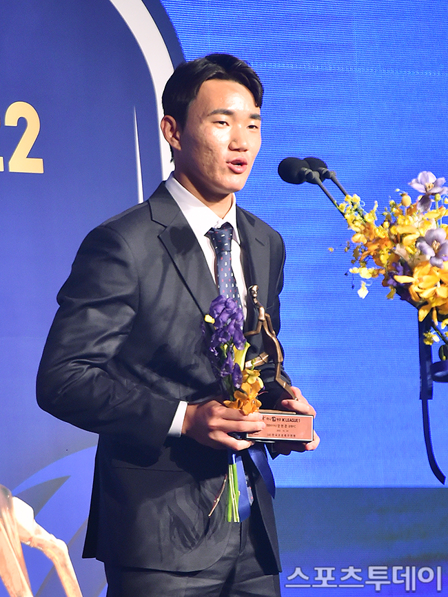 °¿øFC ¾çÇöÁØÀÌ K¸®±×1 ¿µÇ÷¹ÀÌ»óÀ» ¼ö»óÇÏ°í ¼Ò°¨À» ÀüÇϰí ÀÖ´Ù. 2022.10.24.