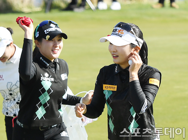 [Á¦ÁÖ=½ºÆ÷Ã÷Åõµ¥ÀÌ ±Ç±¤ÀÏ ±âÀÚ] 2023 KLPGA Åõ¾î °³¸·Àü '·Ôµ¥·»ÅÍÄ« ¿©ÀÚ ¿ÀÇÂ(ÃÑ»ó±Ý 8¾ï ¿ø¡¤¿ì½Â»ó±Ý 1¾ï4400¸¸ ¿ø)' ÃÖÁ¾¶ó¿îµå °æ±â°¡ 9ÀÏ Á¦ÁÖ ¼±ÍÆ÷½Ã ·Ôµ¥½ºÄ«ÀÌÈú Á¦ÁÖ ÄÁÆ®¸®Å¬·´(ÆÄ72¡¤6395¾ßµå)¿¡¼ ¿·È´Ù. ÃÖÁ¾ÇÕ°è 6¾ð´õÆÄ 282Ÿ·Î ¿ì½ÂÇÑ ÀÌ¿¹¿øÀÌ µ¿·áµé·Î ºÎÅÍ ¹°°ú ²É¼¼·Ê¸¦ ¹Þ°í ÀÖ´Ù. 2023.04.09.