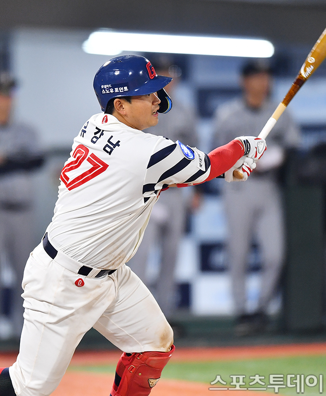 ·Ôµ¥´Â 27ÀÏ ºÎ»ê »çÁ÷±¸Àå¿¡¼ ¿¸° 2023 ½ÅÇÑÀºÇà SOL KBO ¸®±× »ï¼º°úÀÇ È¨°æ±â¿¡¼ 5-3 ³¡³»±â ½ÂÀ» °Åµ×´Ù.