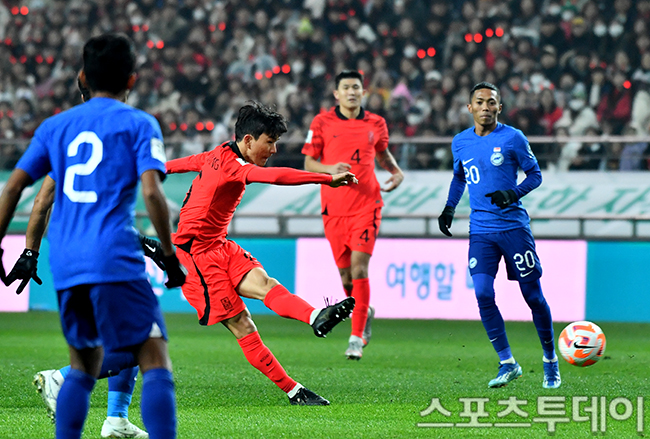 [½ºÆ÷Ã÷Åõµ¥ÀÌ ÆØÇöÁØ ±âÀÚ] 16ÀÏ ¼¿ï »ó¾Ï¿ùµåÄŰæ±âÀå¿¡¼ ¿¸° 2026 FIFA ºÏÁß¹Ì ¿ùµåÄÅ ¾Æ½Ã¾Æ Áö¿ª 2Â÷ ¿¹¼± CÁ¶ 1Â÷Àü Çѱ¹°ú ½Ì°¡Æ÷¸£ÀÇ °æ±â, Àü¹Ý Çѱ¹ ȲÀιüÀÌ ½¸À» Çϰí ÀÖ´Ù. 2023.11.16.