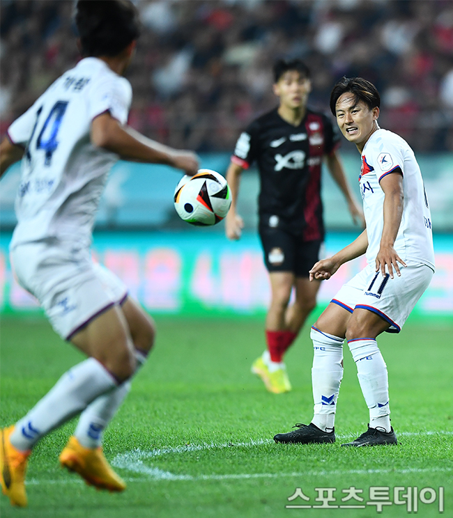 [½ºÆ÷Ã÷Åõµ¥ÀÌ ÆØÇöÁØ ±âÀÚ] 22ÀÏ ¼¿ï¿ùµåÄŰæ±âÀå¿¡¼ ¿¸° 2024 K¸®±×1 FC¼¿ï°ú ¼ö¿øFCÀÇ °æ±â, ¼ö¿ø À̽¿찡 °ø°ÝÇϰí ÀÖ´Ù. 2024.06.22.