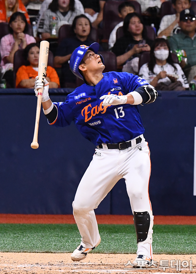 [½ºÆ÷Ã÷Åõµ¥ÀÌ ÆØÇöÁØ ±âÀÚ] 26ÀÏ ¼¿ï °íô½ºÄ«À̵¼¿¡¼ ¿¸° 2025 KBO¸®±× ÇÑÈ À̱۽º¿Í Ű¿ò È÷¾î·ÎÁîÀÇ °æ±â, 5ȸÃÊ ¹«»ç 1,2·ç ÇÑÈ ÃÖÀçÈÆÀÇ ¹øÆ®°¡ Æ÷¼ö ¾ÕÀ¸·Î ¶°¿À¸£°í ÀÖ´Ù. 2025.08.26