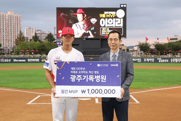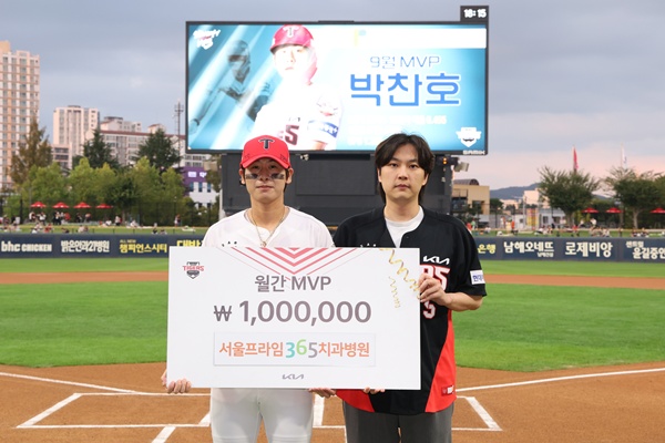 KIA ŸÀ̰ÅÁî ³»¾ß¼ö ¹ÚÂùÈ£¿Í Åõ¼ö ÀÌÀǸ®°¡ °¢°¡ ¼¿ïÇÁ¶óÀÓ365Ä¡°ú¿¡¼ ½Ã»óÇÏ´Â 9¿ù ¿ù°£ MVP, ±¤Áֱ⵶º´¿ø¿¡¼ ½Ã»óÇÏ´Â 9¿ù ¿ù°£ MVP¿¡ ¼±Á¤µÆ´Ù.