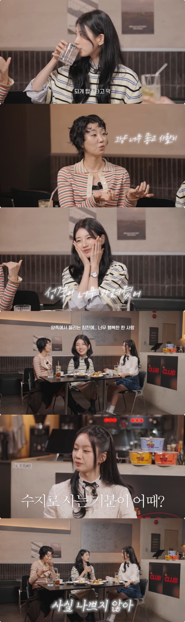 À̾î Çý¸®´Â ¼öÁö¿¡°Ô "¼öÁö·Î »ç´Â ±âºÐ ¾î¶§?"¶ó°í ¹°¾ú´Ù. ÀÌ¿¡ ¼öÁö´Â ¿ôÀ¸¸ç "»ç½Ç ³ª»ÚÁö ¾Ê¾Æ"¶ó°í ´äÇß´Ù. ÀÌÁÖ¿µÀº "ÀÌ·± ¼ÖÁ÷ÇÑ °Å ³Ê¹« ÁÁ¾Æ"¶ó°í ¹ÝÀÀÇß´Ù.