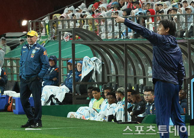 [½ºÆ÷Ã÷Åõµ¥ÀÌ ÆØÇöÁØ ±âÀÚ] 10ÀÏ ¼¿ï¿ùµåÄŰæ±âÀå¿¡¼ ¿¸° Ã౸±¹°¡´ëÇ¥ÆÀ Çѱ¹°ú ºê¶óÁúÀÇ Ä£¼±°æ±â, ºê¶óÁú Ä«¸¦·Î ¾Èÿ·ÎƼ °¨µ¶°ú Çѱ¹ È«¸íº¸ °¨µ¶ÀÌ ¼±¼öµé¿¡°Ô Áö½Ã Çϰí ÀÖ´Ù. 2025.10.10.