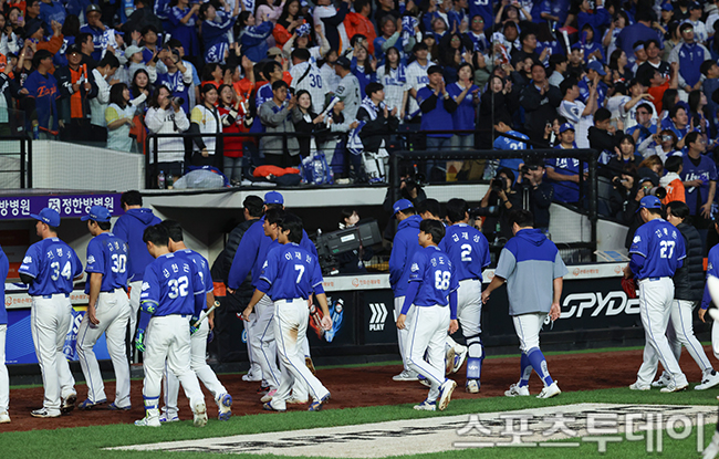 [´ëÀü=½ºÆ÷Ã÷Åõµ¥ÀÌ ÆØÇöÁØ ±âÀÚ] 18ÀÏ ´ëÀüÇÑÈ»ý¸íº¼ÆÄÅ©¿¡¼ ¿¸° 2025 KBO¸®±× Æ÷½ºÆ®½ÃÁð Ç÷¹ÀÌ¿ÀÇÁ »ï¼º ¶óÀÌ¿ÂÁî¿Í ÇÑÈ À̱۽ºÀÇ 1Â÷Àü, 8-9·Î »ï¼ºÀÌ ÆÐÇϰí ÀÖ´Ù. 2025.10.18.