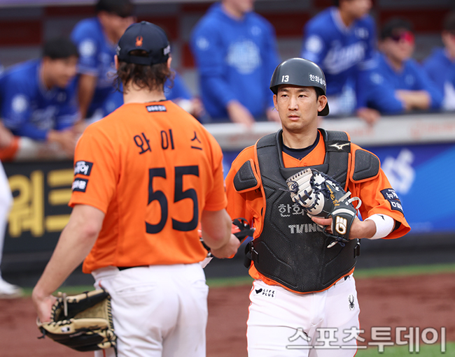 [´ëÀü=½ºÆ÷Ã÷Åõµ¥ÀÌ ÆØÇöÁØ ±âÀÚ] 19ÀÏ ´ëÀüÇÑÈ»ý¸íº¼ÆÄÅ©¿¡¼ ¿¸° 2025 KBO¸®±× Æ÷½ºÆ®½ÃÁð Ç÷¹ÀÌ¿ÀÇÁ »ï¼º ¶óÀÌ¿ÂÁî¿Í ÇÑÈ À̱۽ºÀÇ 2Â÷Àü, ÇÑÈ ¼±¹ßÅõ¼ö ¿ÍÀ̽º°¡ 4ȸ ¼öºñ¸¦ ³¡³»¸ç Æ÷¼ö ÃÖÀçÈÆ°ú ¼ÕÀ» ¸Â´ë°í ÀÖ´Ù. 2025.10.19.