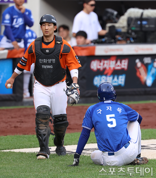 [´ëÀü=½ºÆ÷Ã÷Åõµ¥ÀÌ ÆØÇöÁØ ±âÀÚ] 19ÀÏ ´ëÀüÇÑÈ­»ý¸íº¼ÆÄÅ©¿¡¼­ ¿­¸° 2025 KBO¸®±× Æ÷½ºÆ®½ÃÁð Ç÷¹ÀÌ¿ÀÇÁ »ï¼º ¶óÀÌ¿ÂÁî¿Í ÇÑÈ­ À̱۽ºÀÇ 2Â÷Àü, 4ȸÃÊ 2»ç 1,3·ç »ï¼º ±¸ÀÚ¿íÀÌ µð¾ÆÁî 2·çŸ ¶§ ȨÀ¸·Î ÇâÇÏ´Ù ¾Æ¿ôµÇ°í ÀÖ´Ù. 2025.10.19.