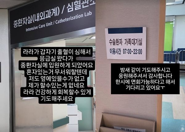 À̶§±îÁö¸¸ ÇØµµ Å« ¹®Á¦°¡ ¾øÀ» °Í °°¾ÒÁö¸¸ ¿À´Ã(23ÀÏ) »õº®, µ¹¿¬ "¶ó¶ó°¡ °©ÀÚ±â ÃâÇ÷ÀÌ ½ÉÇØ¼ ÀÀ±Þ½Ç ¿Ô´Ù°¡ ÁßȯÀڽǿ¡ ÀÔ¿øÇÏ°Ô µÆ´Ù"¶ó°í ¹àÇû´Ù.