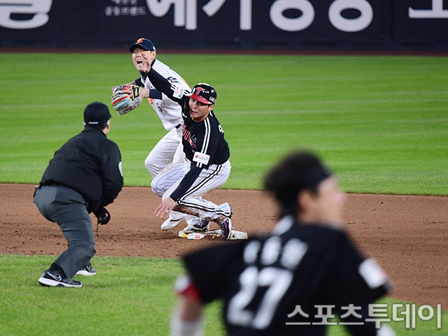 [´ëÀü=½ºÆ÷Ã÷Åõµ¥ÀÌ ±Ç±¤ÀÏ ±âÀÚ] 2025 ½ÅÇÑÀºÇà SOL Bank KBO¸®±× Çѱ¹½Ã¸®Áî 4Â÷Àü LGÆ®À©½º¿Í ÇÑÈ À̱۽ºÀÇ °æ±â°¡ 30ÀÏ ´ëÀüÇÑÈ»ý¸í º¼ÆÄÅ©¿¡¼ ¿·È´Ù. ÇÑÈ ÇÏÁÖ¼®°ú LG ¿ÀÁöȯÀÌ 7ȸÃÊ 2·ç¿¡¼ Ãæµ¹À» Çϰí ÀÖ´Ù. 2025.10.30.