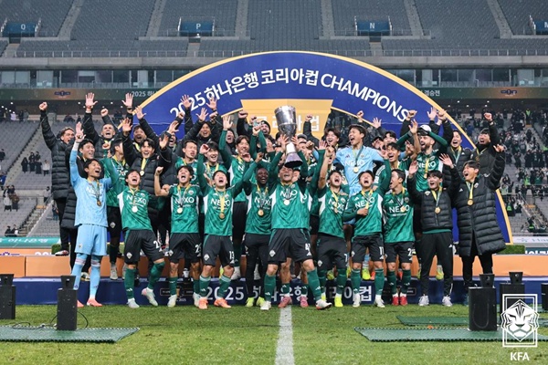 ÀüºÏÀº 6ÀÏ ¼¿ï¿ùµåÄŰæ±âÀå¿¡¼ ¿¸° 2025 ÇϳªÀºÇà ÄÚ¸®¾ÆÄÅ °á½ÂÀü¿¡¼ ¿¬ÀåÀü±îÁö °¡´Â Á¢Àü ³¡¿¡ ±¤ÁÖFC¸¦ 2-1·Î ²ª°í ¿ì½ÂÀ» Â÷ÁöÇß´Ù.
