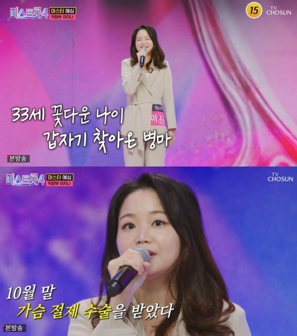 ÀÌÁö³ª´Â ¹àÀº ¸ñ¼Ò¸®·Î "°Ç°ÇÏ°Ô ¸ÅÀϸÅÀÏ Æò»ý »ì°í ½Í¾î¼ '¹Ì½ºÆ®·Ô4'¿¡ ³ª¿À°Ô µÈ ÀÌÁö³ª´Ù"¶ó¸ç ÀλçÇß´Ù. »ç¶û½º·¯¿î ºÐÀ§±â¿Í ´Ù¸¥ ¹«°Å¿î »ç¿¬À» ÁüÀÛÄÉ Çߴµ¥, ÀÌÁö³ª´Â "¿ÃÇØ 8¿ù¿¡ À¯¹æ¾Ï 3±â Áø´ÜÀ» ¹Þ¾Ò´Ù"¶ó°í ¹àÇû´Ù.