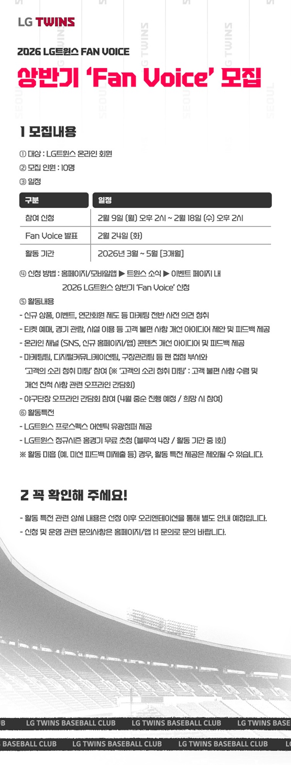 LG Æ®À©½º 2026 »ó¹Ý±â 'ÆÒ º¸À̽º'´Â LG Æ®À©½º ¿Â¶óÀΠȸ¿øÀ̶ó¸é ´©±¸³ª Áö¿ø °¡´ÉÇÏ´Ù. ¸ðÁý ÀοøÀº ÃÑ 10¸íÀ̸ç, LGÆ®À©½º ȨÆäÀÌÁö ¹× ¸ð¹ÙÀÏ¾Û À̺¥Æ® ÆäÀÌÁö ³»¿¡¼ ½Åû °¡´ÉÇÏ´Ù.