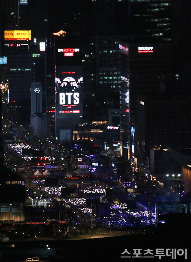 ÃÖÈÖ¿µ ¹®Ã¼ºÎ Àå°ü, BTS ±¤È­¹® °ø¿¬¿¡ °¨Åº "º¸¶ùºûÀ¸·Î ¹°µç ±¤Àå"
