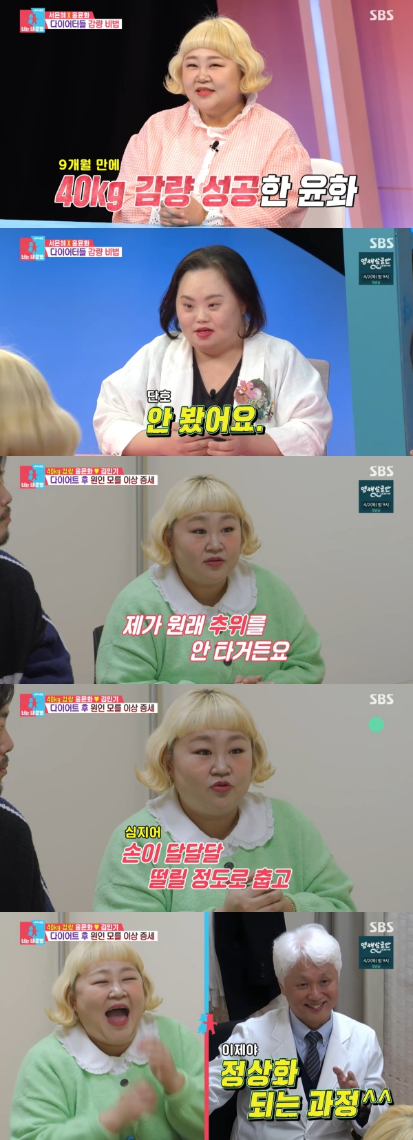 È«À±È´Â 9°³¿ù ¸¸¿¡ 40kgÀ» °¨·®ÇØ ÈÁ¦¸¦ ¸ð¾Ò´Ù. ¼ÀåÈÆÀº ¼ÀºÇý¿¡°Ô "È«À±È Áö±ÝÀÌ ´õ ¿¹»Ú³Ä, ¾Æ´Ï¸é »ì »©±â ÀüÀÌ ´õ ¿¹»Ú³Ä"°í ¹°¾ú´Ù. ¼ÀºÇý´Â "À¯Æ©ºê¸¦ º¸´Âµ¥ È«À±È ¼±¹è´ÔÀÌ ¶á´Ù"¸ç "¾È ºÃ´Ù"°í ´äÇØ ¿ôÀ½À» ¾È°å´Ù.
