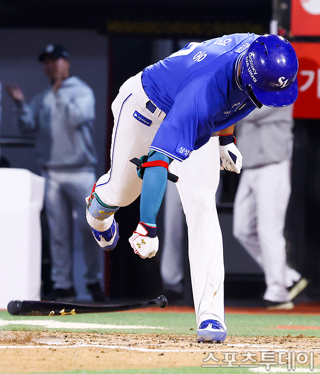 [¼ö¿ø=½ºÆ÷Ã÷Åõµ¥ÀÌ ÆØÇöÁØ ±âÀÚ] 3ÀÏ ¼ö¿øKTÀ§ÁîÆÄÅ©¿¡¼ ¿¸° 2026 KBO¸®±× »ï¼º ¶óÀÌ¿ÂÁî¿Í KT À§ÁîÀÇ °æ±â, 6ȸÃÊ 2»ç 3·ç »ï¼º ±è¿µ¿õÀÌ »ïÁø¾Æ¿ôÀ» ´çÇÏ¸ç ¹Ù´Ú¿¡ ¹æ¸ÁÀ̸¦ ´øÁö°í ÀÖ´Ù. 2026.04.03.