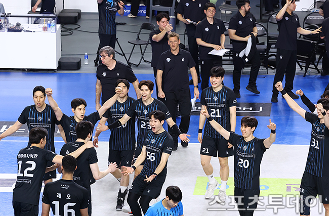 [õ¾È(Ãæ³²)=½ºÆ÷Ã÷Åõµ¥ÀÌ ÆØÇöÁØ ±âÀÚ] 8ÀÏ Ãæ³² õ¾ÈÀ¯°ü¼øÃ¼À°°ü¿¡¼­ ¿­¸° 2025-2026 V¸®±× ³²ÀںΠÇö´ëijÇÇÅ»°ú ´ëÇÑÇ×°øÀÇ Ã¨ÇǾð °áÁ¤Àü 4Â÷Àü, 3-0À¸·Î Çö´ëijÇÇÅ»ÀÌ ½Â¸®Çϰí ÀÖ´Ù. 2026.04.08.