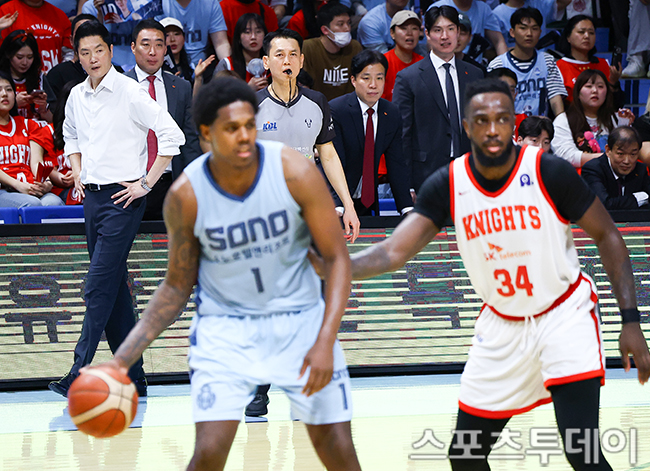 [°í¾ç(°æ±â)=½ºÆ÷Ã÷Åõµ¥ÀÌ ÆØÇöÁØ ±âÀÚ] 16ÀÏ °æ±âµµ °í¾çüÀ°°ü¿¡¼ ¿¸° 2025-2026 KBL 6° Ç÷¹ÀÌ¿ÀÇÁ °í¾ç ¼Ò³ë¿Í ¼¿ï SKÀÇ 3Â÷Àü, ¼Ò³ë°¡ 66-65·Î ½Â¸®Çϸç 4°¿¡ ÁøÃâÇß´Ù. 4ÄõÅÍ SK ÀüÈñö °¨µ¶ÀÌ ¼±¼öµéÀ» º¸°í ÀÖ´Ù. 2026.04.16.