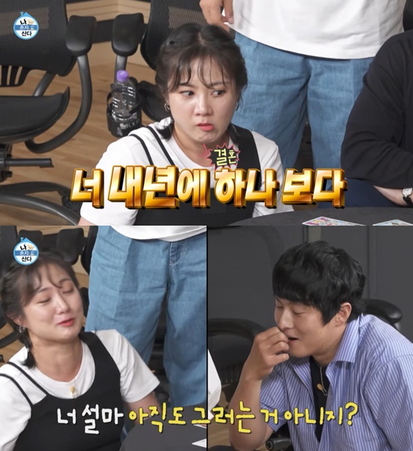 À̳¯ À±°¡ÀÌ´Â ¸â¹öµé¿¡°Ô Áï¼® Ÿ·Î¸¦ Á¦¾ÈÇß´Ù. ÀÌ¿¡ ÀüÇö¹«´Â ¹Ú³ª·¡¸¦ ÇâÇØ "µý µ¥ º¸´Ï±î °áÈ¥ÇÏ°í ½Í´Ù°í ³¸®´õ¶ó"°í Á¦¾ÈÇß´Ù. ¹Ú³ª·¡´Â "Çϰí¾ß ½Í´Ù. ±Ùµ¥ ±×°Ô ¸¶À½¸¸À¸·Î µÇ³ª"¶ó°í ¾Æ½¬¿òÀ» µå·¯³Â´Ù.