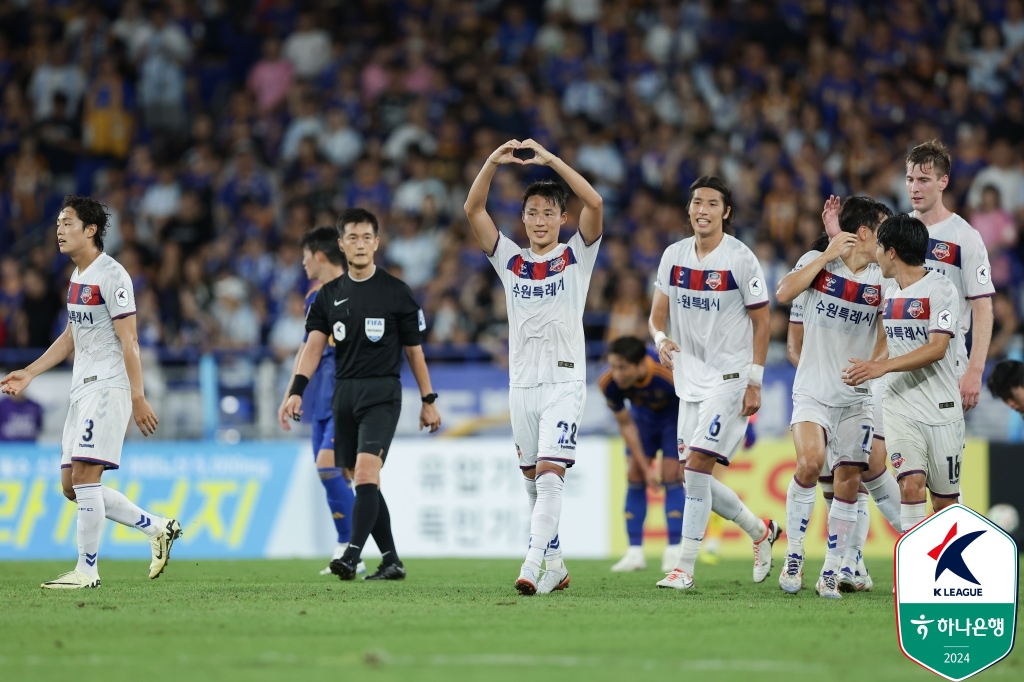 ¼ö¿øFC´Â 18ÀÏ ¿ï»ê ¹®¼öÃ౸°æ±âÀå¿¡¼ ¿¸° ÇϳªÀºÇà K¸®±×1 2024 27¶ó¿îµå ¿ï»ê°úÀÇ °æ±â¿¡¼ 2-1·Î ½Â¸®Çß´Ù.